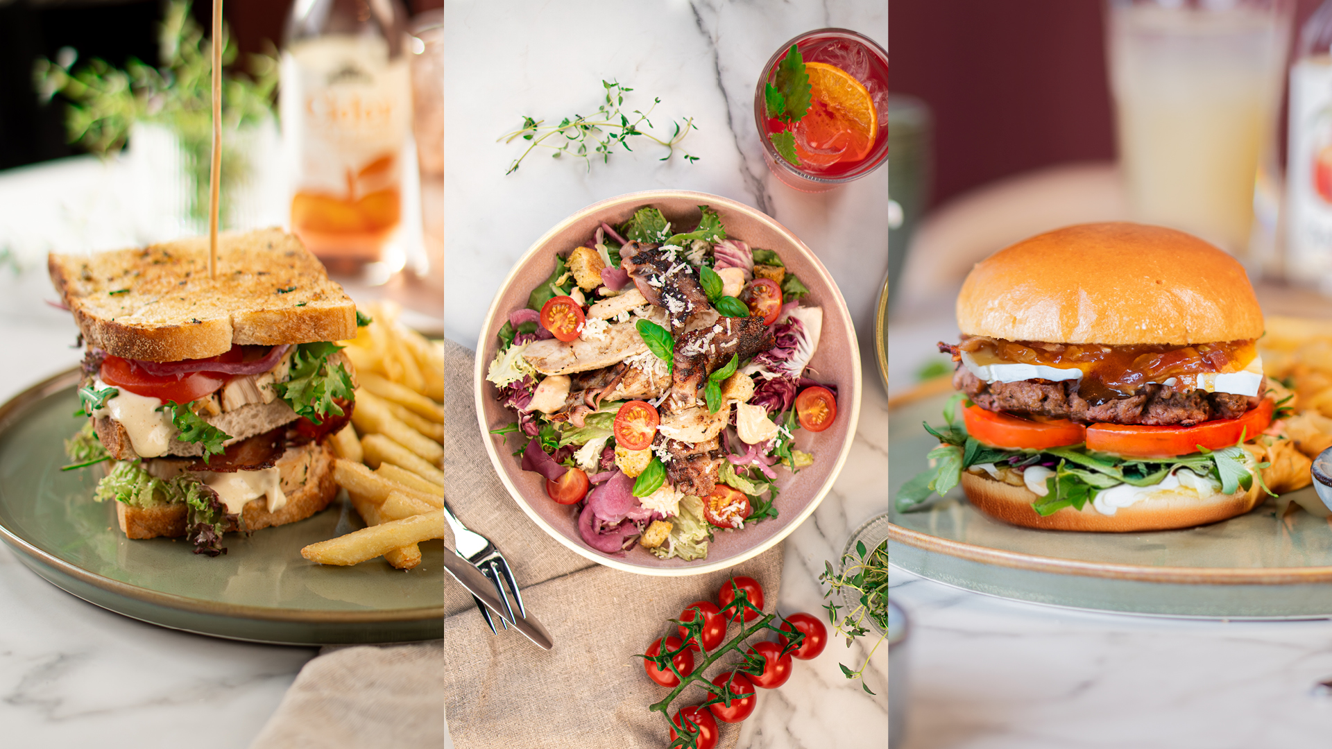 Saftig kylling, sprøtt bacon, frisk salat, parmesan, cherrytomat, krutonger, syltet rødløk og chiliaioli. Serveres med nystekt focaccia og godt smør. En klassiker for deg som vil ha noe lett – men skikkelig godt.