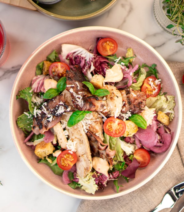 Som en del av bidraget tilbyr vi "Rosa lunsj" fra mandag 29. september - lørdag 1. november, med gjestefavoritten kylling- og baconsalat i hovedrollen, men for hver solgte salat gir våre caféer 10 kroner direkte til Rosa sløyfe.